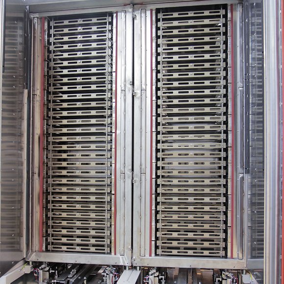 Durch die namensgebende Mäanderbauweise dieses Spezialtrockners im Rehm Portfolio können auf kleinstem Raum eine große Anzahl von Teilen lagegenau durch die Prozesskammer geführt werden. Die Beladeposition liegt außerhalb der Kammer; die Beladung selbst erfolgt entweder manuell oder mit Hilfe eines Roboters. Als Sonderanlage konzipiert, kann die exakte Bauweise des Mäandertrockners individuell nach Kundenwunsch angepasst werden.