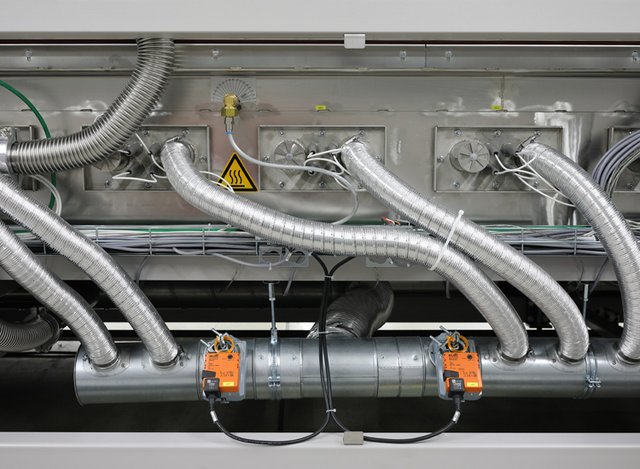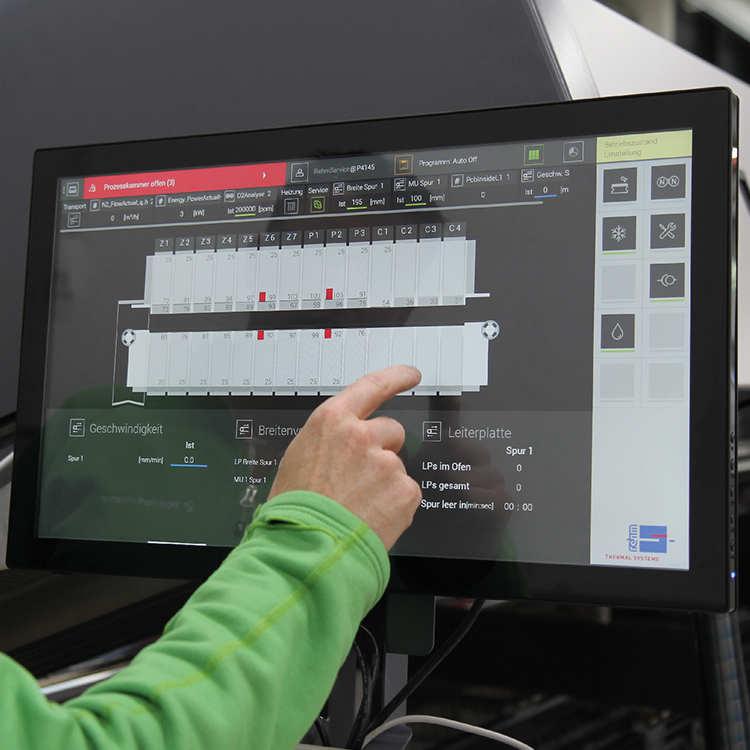 Während des Lötprozesses freigesetzte Substanzen aus Leiterplatten, Lotpaste oder Bauteilen müssen aus dem Prozessgas gefiltert werden. Daher verfügt die VisionXP+ über ein Residue-Management-System, bei dem das Prozessgas im System umgewälzt und gereinigt wird. Es kombiniert die Wirkmechanismen der Pyrolyse im Vorheiz- und Peakbereich mit der Kaltkondensation in der Kühlzone. Die Pyrolyse ist so aufgebaut, dass sie nur 1x pro Jahr gereinigt werden muss – das Resultat sind lange Wartungszyklen sowie eine saubere und trockene Prozesskammer.