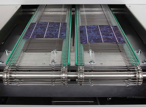 Die RDS Solartrockner bieten optimale Möglichkeiten für das Trocknen von Pasten auf Silizium-Solarzellen. Das Trocknungssystem für AluBsF-Solarzellen besteht aus einer Kombination von mehreren Infrarot-Zonen und einer zentralen Konvektionszone. So kann das Temperaturprofil flexibel, aber dennoch mit höchster Genauigkeit eingestellt werden. Bei Anwendungen in der HJT- Heterojunktion-Zelltechnologie sind aufgrund der geringeren Prozesstemperaturen (<250 °C) auf der einen Seite, aber den deutlich längeren Verweilzeiten von 10–30 min auf der anderen Seite andere Anforderungen an das Trocknungssystem gefordert. Um den Anforderungen der langen Verweilzeiten (10-30 Minuten) gerecht zu werden, hat Rehm spezielle Trockner für diese Technologie entwickelt. Mit dem Dreifachspur-Trockner und dem PV-Magazintrockner im Baukastensystem bietet Rehm flexible Lösungen für unterschiedliche Durchsatzanforderungen bei geringem Platzbedarf. Für die optimale Aushärtung von UV-Lacken hat Rehm zudem einen UV-Trockner konzipiert, der speziell für die Aushärtung von UV-Lacken und -Klebern geeignet ist. UV-Lacke sind lösemittelfrei, daher besonders gut zu verarbeiten und umweltfreundlich.