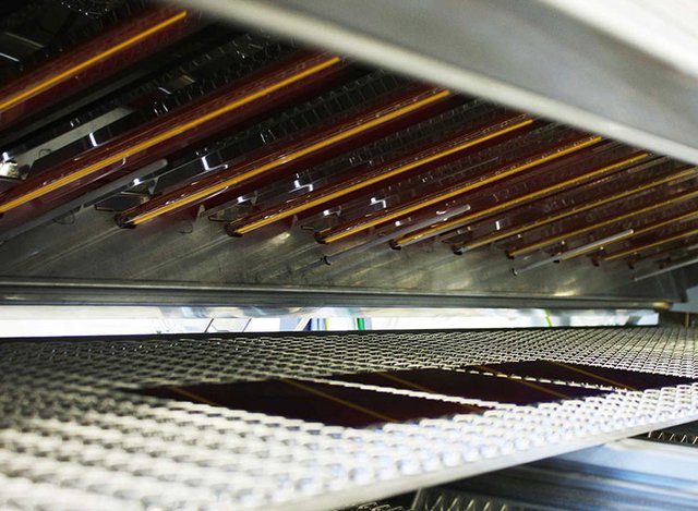Unser System haben wir besonders wartungsfreundlich konzipiert. Für eine gute Zugänglichkeit kann das Prozesskammer-Oberteil motorisch aufgeklappt werden und ist in der Ausführung in Edelstahl leicht zu reinigen. Die IR-Strahler können durch Demontage einer isolierten Kammerabdeckung im Bedarfsfall einfach entnommen und ausgetauscht werden. Die Kühlstrecke ist ebenfalls klappbar ausgeführt. Die freie Zugänglichkeit zu Antriebssystem und Schaltschrank ist durch einfaches Abnehmen von Verkleidungsteilen oder Öffnen von Türen mit geeignetem Schlüssel möglich.