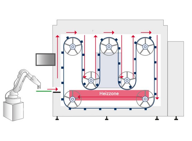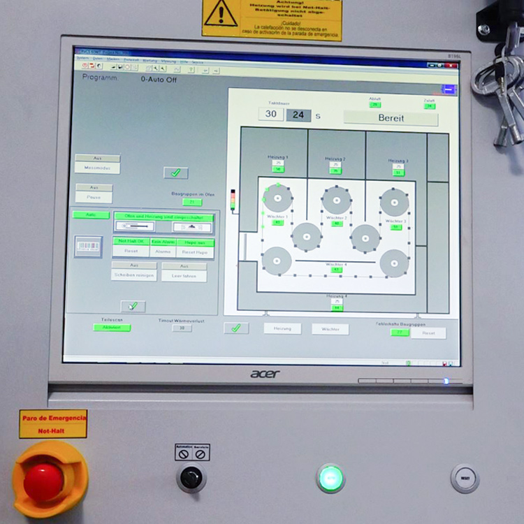 Der Pramo bietet Ihnen auch im Hinblick auf den Warmfunktionstest Flexibilität und Sicherheit bei der Gestaltung und Umsetzung Ihrer Testaufgaben. Ein stabiler Umlaufwarenträgertransport sorgt für einen sicheren Durchlauf der Baugruppe durch die Anlage und absolute Prozessstabilität. Dabei hat der Pramo ausreichend Aufnahmekapazität, um auch große Teile bei kurzer Taktzeit zuverlässig auf die gewünschte Prüftemperatur zu temperieren. Um die Entnahme der Baugruppen mit der entsprechenden Temperatur zu garantieren, wird die Warenträgerrückführung als zusätzliche Heizzone ausgeführt.